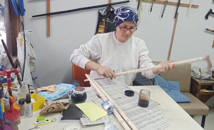 Mesleki yolculuğunu ve günlük temposunu anlatan Fatime Ayvacı, “Ev hanımıyım aynı zamanda. İki çocuğum var. Arta kalan zamanımda dükkana geliyorum. Eşimle beraber 20 yıldan beri baston yapıyorum. Bir kadının yapamayacağı, elinden gelmeyen iş yoktur. Her şeyi yapar, başarır. Baston da yapar, ev hanımlığı da yapar. Eşine destek de çıkar; çocuklarına da torunlarına da bakar. Hem anneyim hem ustayım. Kendi çapımda ustayım” dedi.
