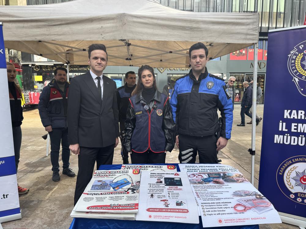 Son dönemde artış gösteren dolandırıcılık olaylarında, çocuklar adına açılan banka hesapları ve IBAN’ların kötü niyetli kişilerce kullanıldığının tespit edilmesi üzerine harekete geçen Karabük Cumhuriyet Başsavcılığı, toplumsal farkındalığın artırılması amacıyla kentin farklı noktalarında bilgilendirmeye yönelik stantlar kurdu.
