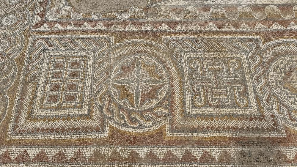 Karabük’ün Eskipazar ilçesindeki Hadrianopolis Antik Kenti’nde sürdürülen kazılarda literatürde bulunmayan motiflere sahip 4. yüzyıl mozaikleri ile bir saray kompleksinin kabul salonu gün yüzüne çıkarıldı.