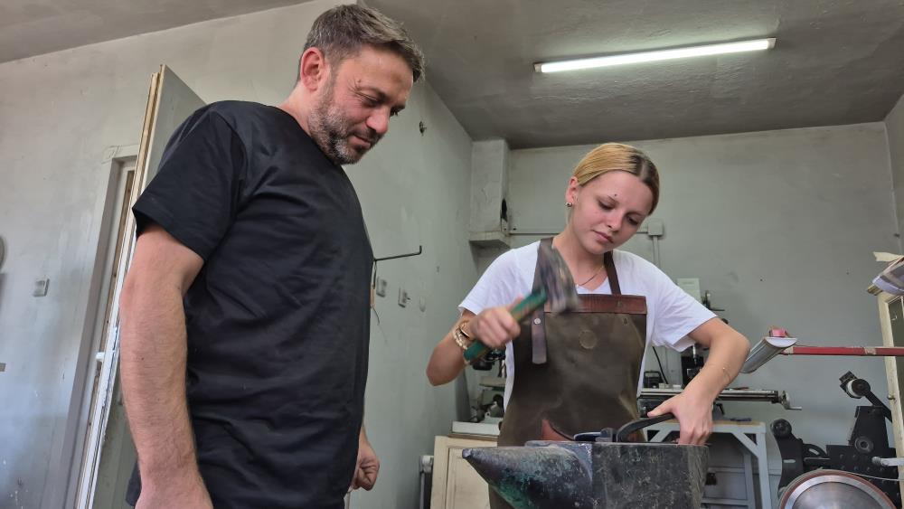 Babasının yanında bıçak ustalığını öğrenen Yaprak Altınışık ise asıl mesleğinin kuyumculuk olduğunu, babasının çalışmalarını gördükçe bıçak sanatına merakının arttığını söyledi. Altınışık, “Her mesleğin kendine göre bir zorluğu var. Şu anda çırak olarak ilerlediğim için daha çok zorlanıyorum. Bıçak yaparken daha çok gravür kısmında zorlanıyorum. Kabza kısmında işlemeler, dokular çalıştığımızda daha çok zorlanıyorum” dedi.