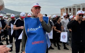Özçelik-İş Sendikası Genel Başkan Yardımcıları Mustafa Kılıç ve Şerafettin Koç, Samsun’da faaliyet gösteren Sampa Otomotiv’de alınteri akıtan üyeleriyle birlikte aylardır maaşların gecikmeli yatırılmasını ve son iki aydır da maaşların ödenmemesini protesto ederek basın açıklaması gerçekleştirdi.