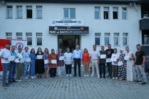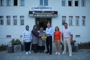 İlk hasat etkinliğine Başkan Dr. Faruk Özlü’nün yanı sıra, İl Tarım ve Orman Müdürü Esra Uzun, Park ve Bahçeler Müdürü Mücella Öztürk de katılım sağlarken, Düzce Belediyesi ile İl Tarım ve Orman Müdürlüğü iş birliğinde yürütülen “Seracılık ve Bitki Yetiştiriciliği” kursunu başarıyla tamamlayan kursiyerlere sertifikaları verildi.