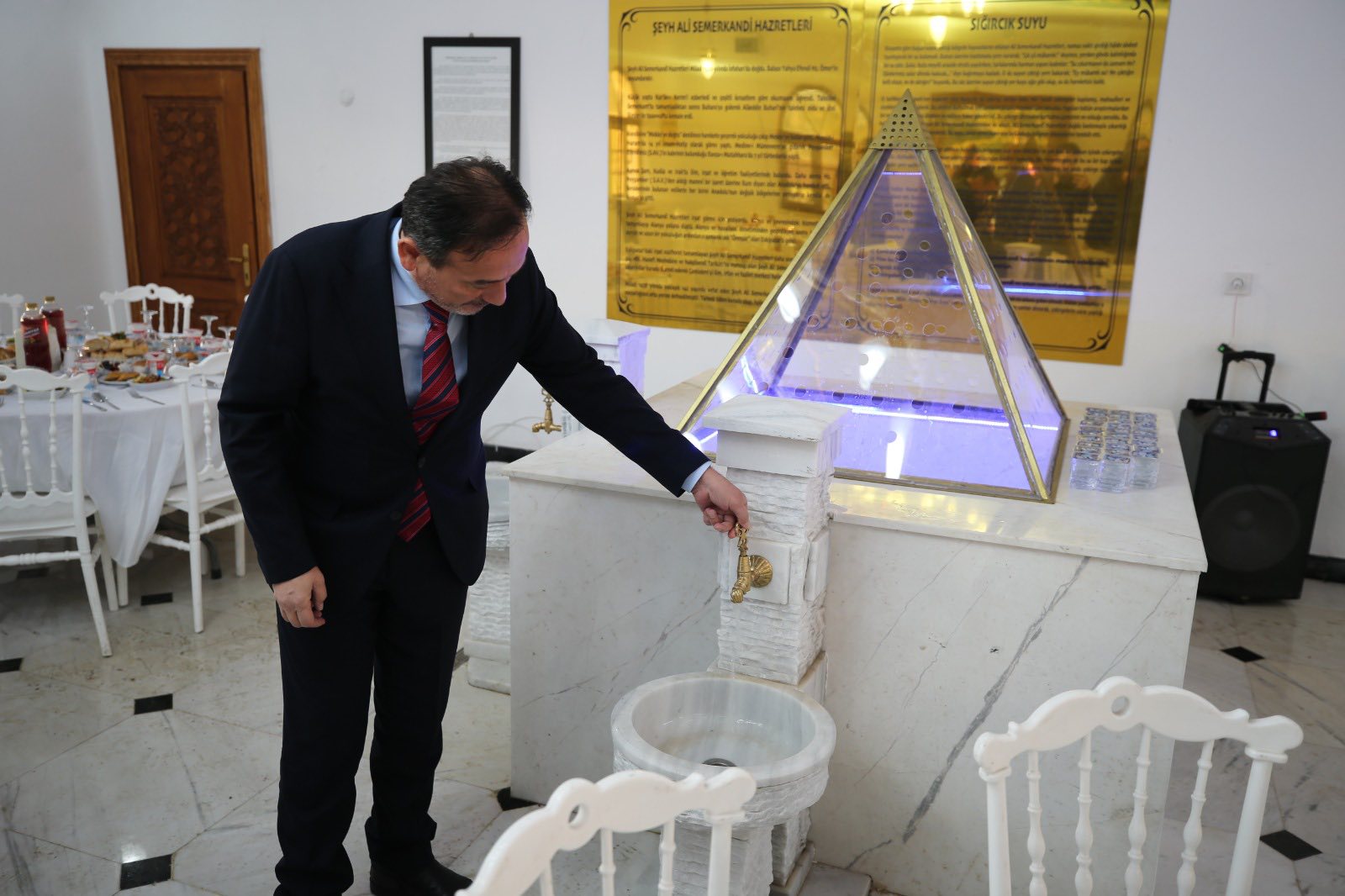 Açılış konuşmasını yapan Eskipazar Belediye başkanı Serkan Cıva; “ Buranın güzel bir hikâyesi var. İlçemiz için son derece kıymetli olan ve her yıl binlerce insanı ağırlayan kutsal bir mekân. Restorasyonu uzun süredir ilçenin gündemindeydi ve birçok proje yapıldı. Şükürler olsun ki bizim dönemimize rastladı. Şükrü Gökkaya ağabeyimiz ile buranın restorasyonu için bir kampanya başlattık. Kıymetli ağabeyimiz Bayram Demir projeyi üstlendi ve ortaya muhteşem bir eser çıktı. Allah ondan razı olsun” dedi.