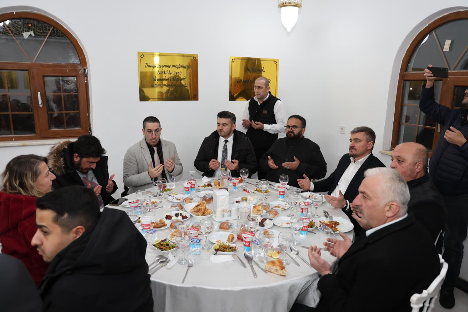 Bugün burada, kıymetli bir hayırseverimizin katkılarıyla çok değerli bir eser ortaya konulmuş. Emeği ve katkısı bulunan herkesten Allah razı olsun. Maddi destek sağlayan Bayram Demir Bey’e özellikle teşekkür ediyorum. Siz kıymetli hemşerilerimizin de bu sofraya katılarak birlik ve beraberliğimizi güçlendirmesi bizleri ayrıca memnun etmiştir. Ramazan ayınızı tebrik ediyor, hep birlikte sağlık ve huzur içerisinde bayrama kavuşmayı temenni ediyorum. Hepinize hayırlı akşamlar diliyorum.”