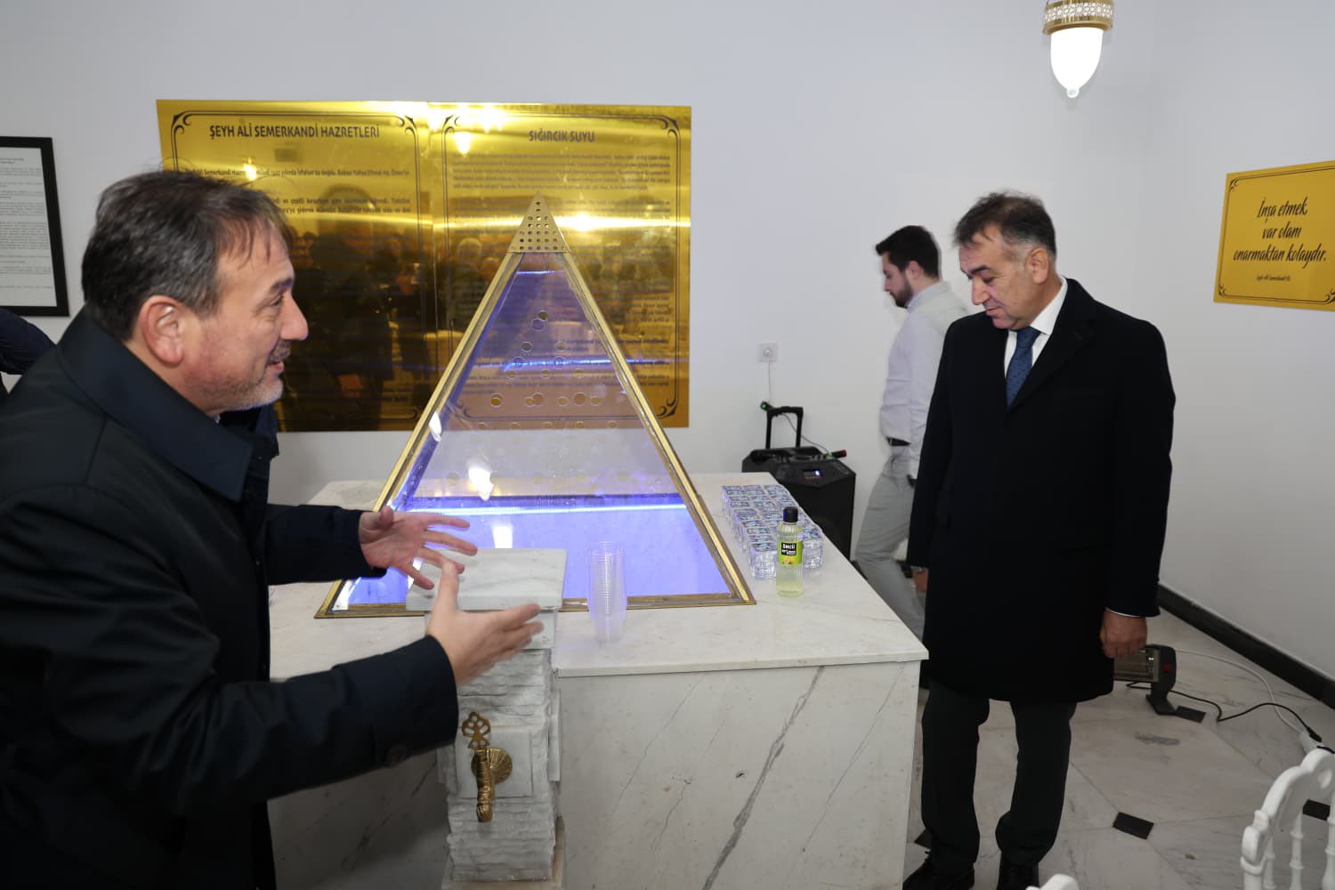 AK Parti Karabük Milletvekili Durmuş Ali Keskinkılıç da şehirlerin sadece binalarla inşa edilmediğini anlattı. Şehirlerin manevi yönünün de inşa edilmesi gerektiğini vurgulayan Keskinkılıç, “Karabük’ümüze yaptığımız birçok bina ve inşa faaliyetinin yanına Karabük’ümüzün, Eskipazar’ımızın manevi ikliminin de canlanması için bu çalışmayı yaptık. Hz. Ömer Efendimizin soyundan gelen Şeyh Ali Semerkandi hazretlerinin Eskipazar’a hediye ettiği ‘Sığırcık Suyu’ Anadolu zemzemleri diye bilinen sular içindedir. Karabük’ümüzün maneviyatına ciddi katkısı olan bir eserdir.” diye konuştu.